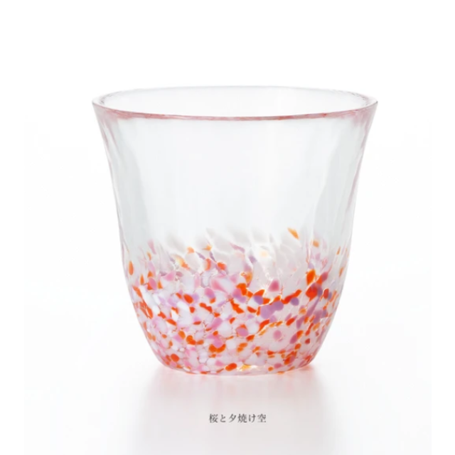 日式祝福櫻花富士山玻璃杯 (粉紅) (日本製)