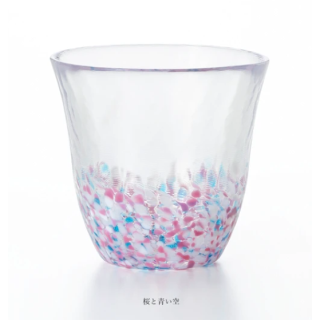 日式祝福櫻花富士山玻璃杯 (粉藍) (日本製)
