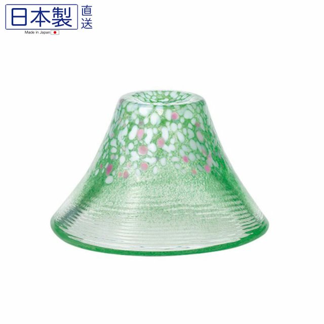 日式祝福櫻花富士山玻璃杯 (綠色) (日本製)
