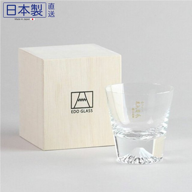 日式木盒招福富士山玻璃杯 (日本製)