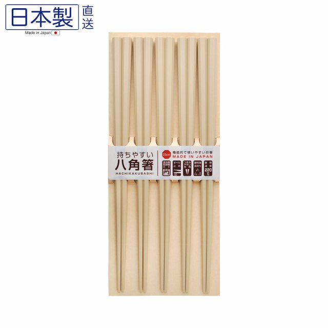日本八角樹脂纖維耐熱筷子 (米色) (5對入) (日本製)