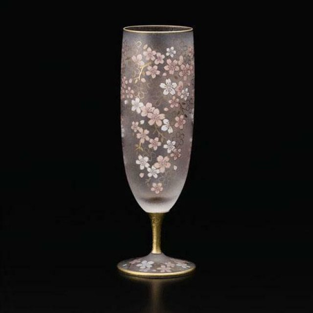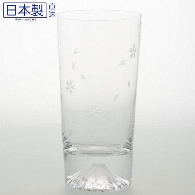 日本田島硝子富士山櫻花玻璃杯 15CM (日本製)