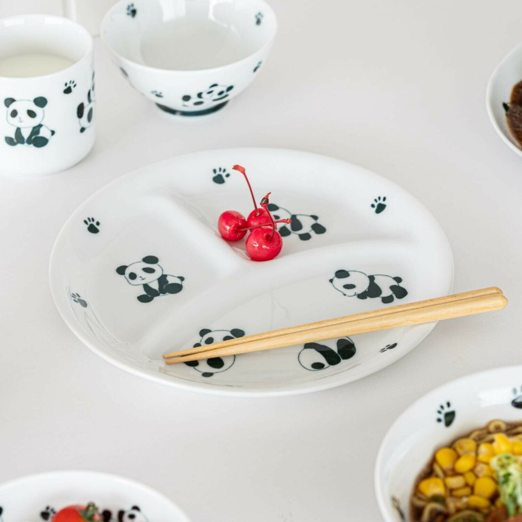 日本美濃燒動物園熊貓分隔碟21.5CM (日本製)