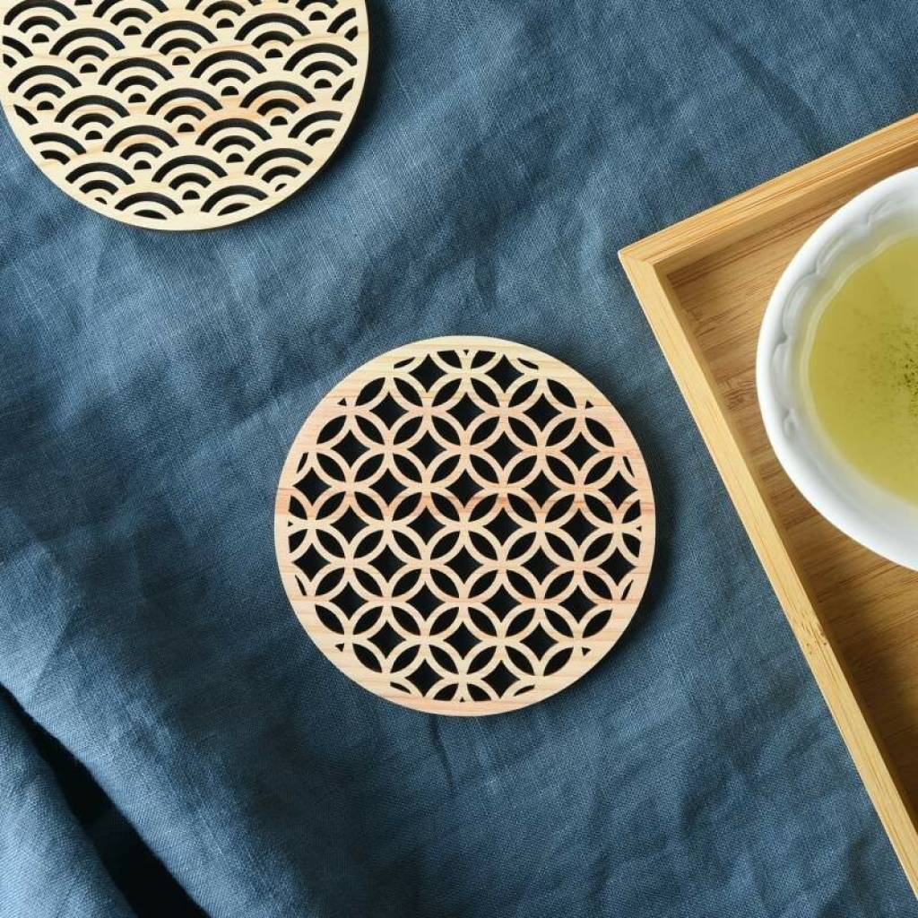 日本檜木傳統圖案杯墊(七宝) (日本製)