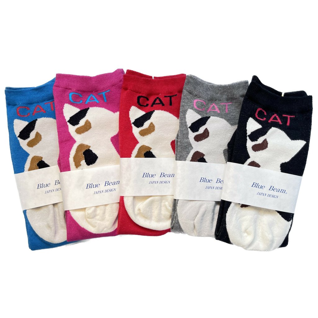 日式花貓貓背圓襪(灰) (日本製)