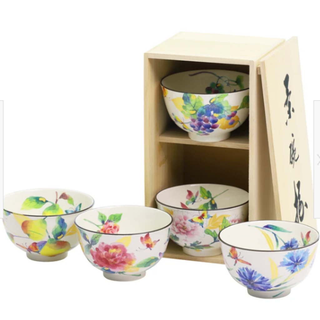 日本美濃燒花胡蝶瓦碗禮盒套裝 (5枚入) (日本製)