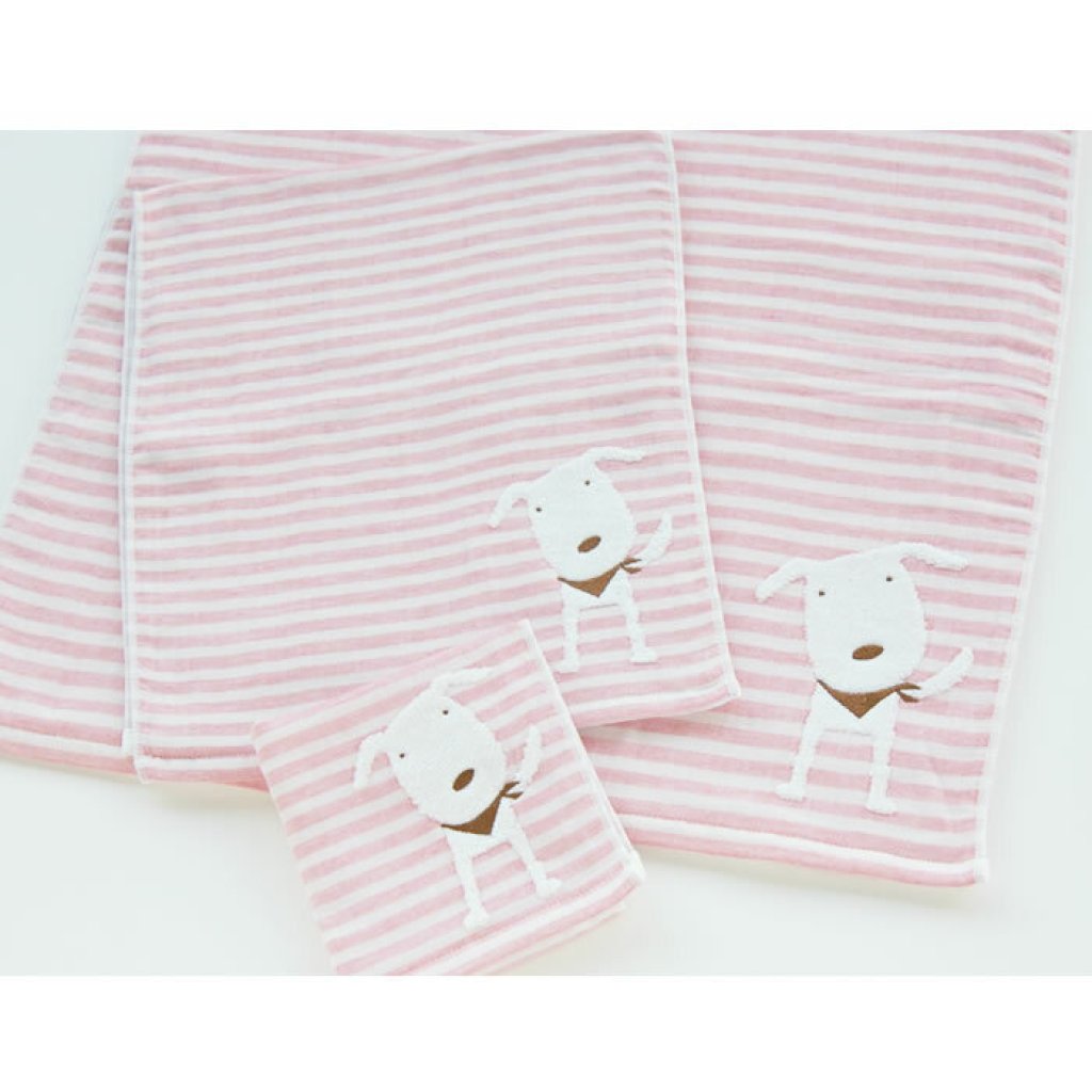 日本今治xSelbie Pon白犬 絨毛拼紗巾雙面長毛巾 (日本製)