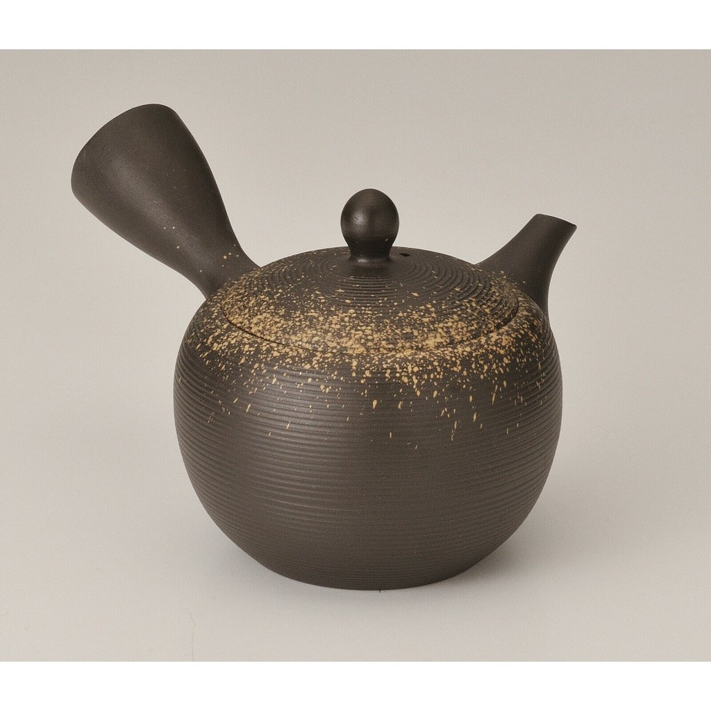日本常滑燒急須富仙黒高丸千段金吹茶壺 (日本製)