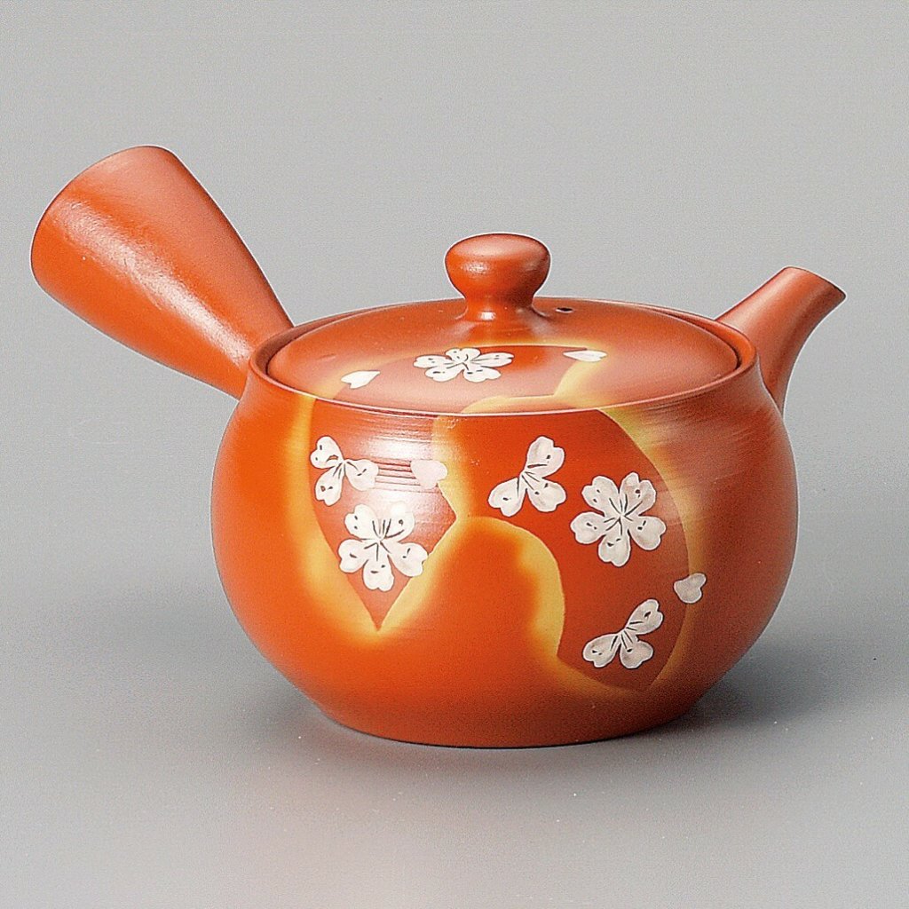 日本常滑燒急須富仙朱泥帯丸扇面茶壺 (日本製)