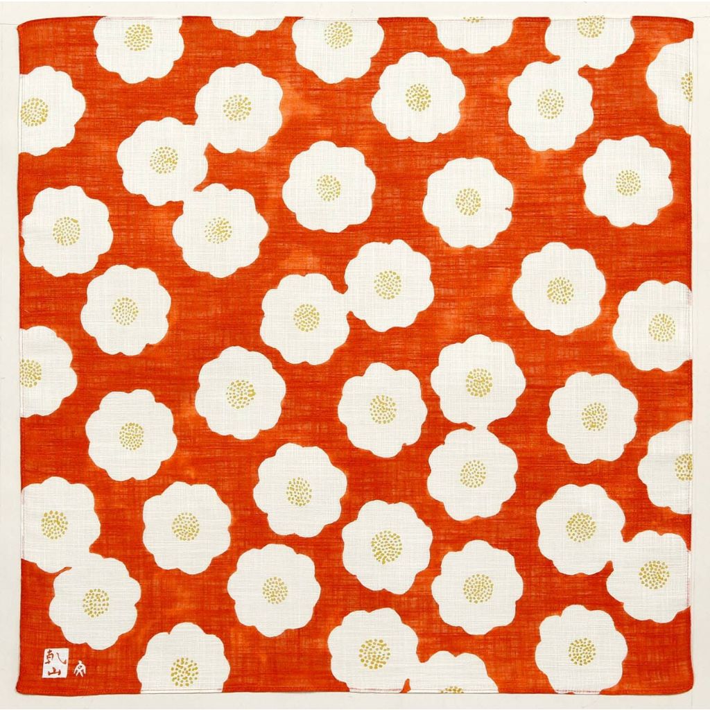 日本茶陶の美刺繍椿文紗布方巾 (紅色) 50x50 (日本製)