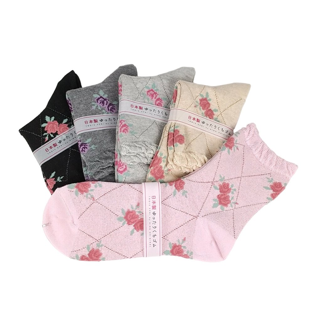 日式薔薇圖案襪 (日本製)