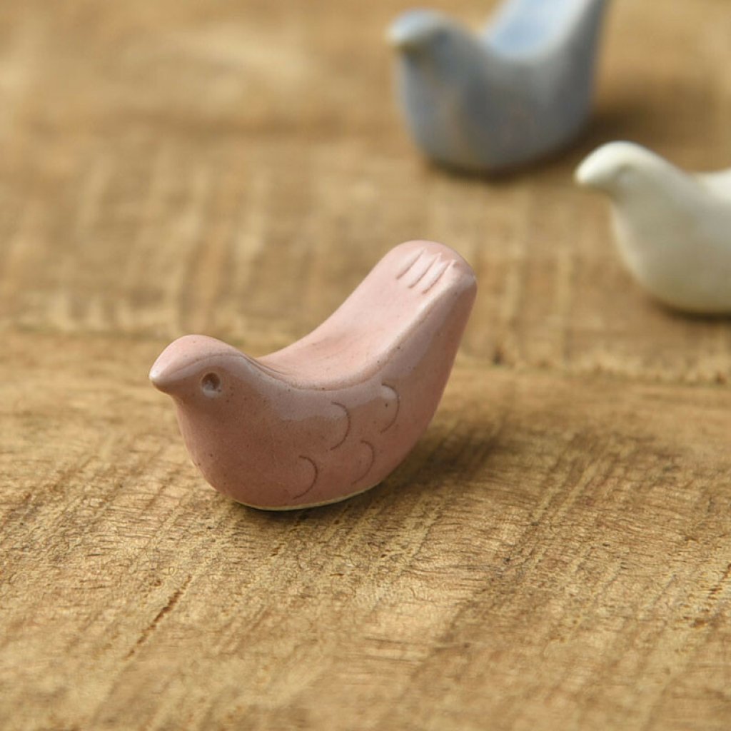 日本美濃燒小鳥筷子托(紅) (日本製)
