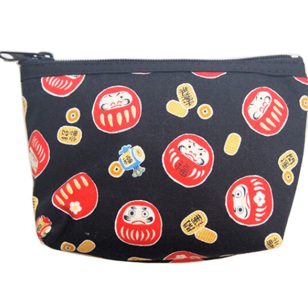 日本縁起屋だるま達摩拉鏈袋(黑)(小) (日本製)
