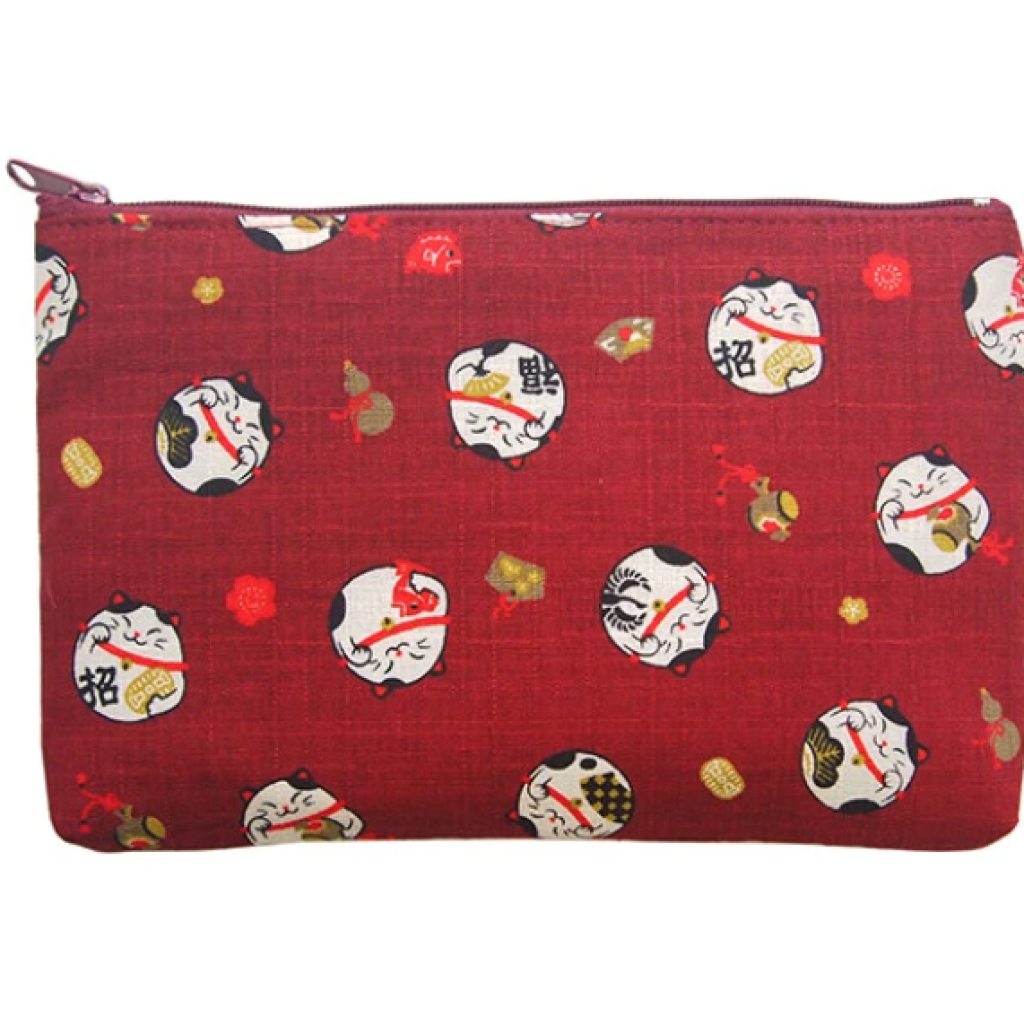 日本縁起屋福丸ねこ招財貓拉鏈袋(紅) (日本製)