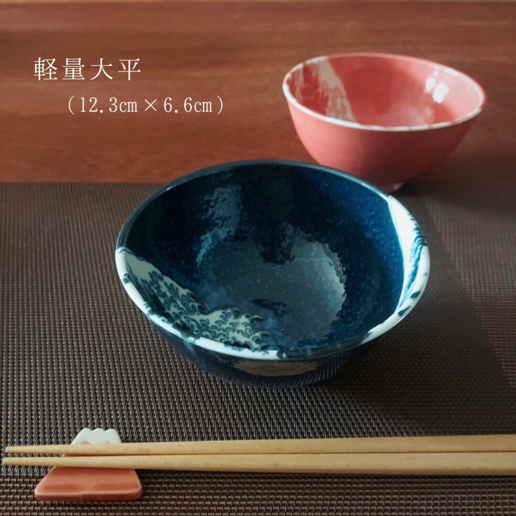 日本美濃燒神奈川沖浪裏瓦碗(紅) 12.3CM (日本製)