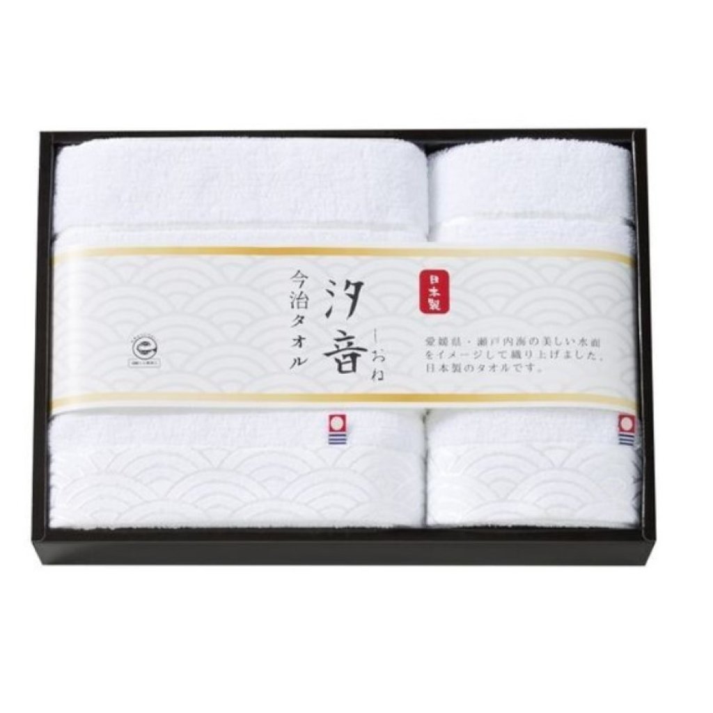 日本今治x汐音 海浪紋純白毛巾禮盒套裝 (大浴巾+方巾) (日本製)