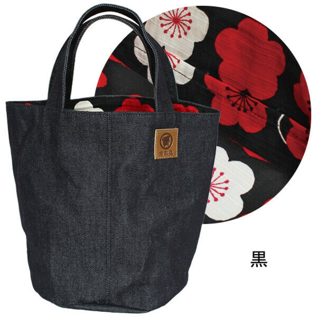 日本倉敷牛仔靛藍暗花手提袋(紅) (日本製)