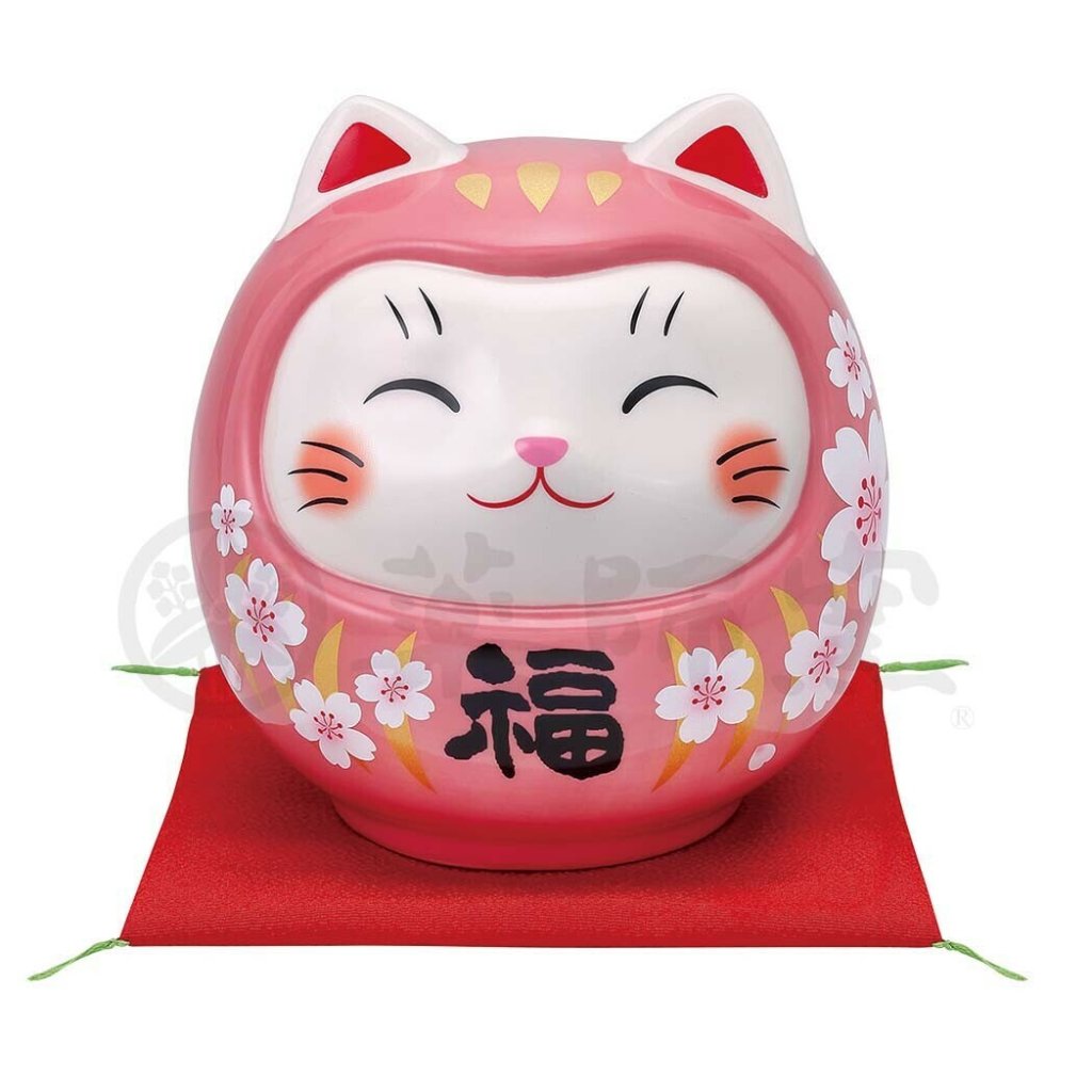 日式藥師窯好運貓貓達摩(粉紅)(大) (非日本製)