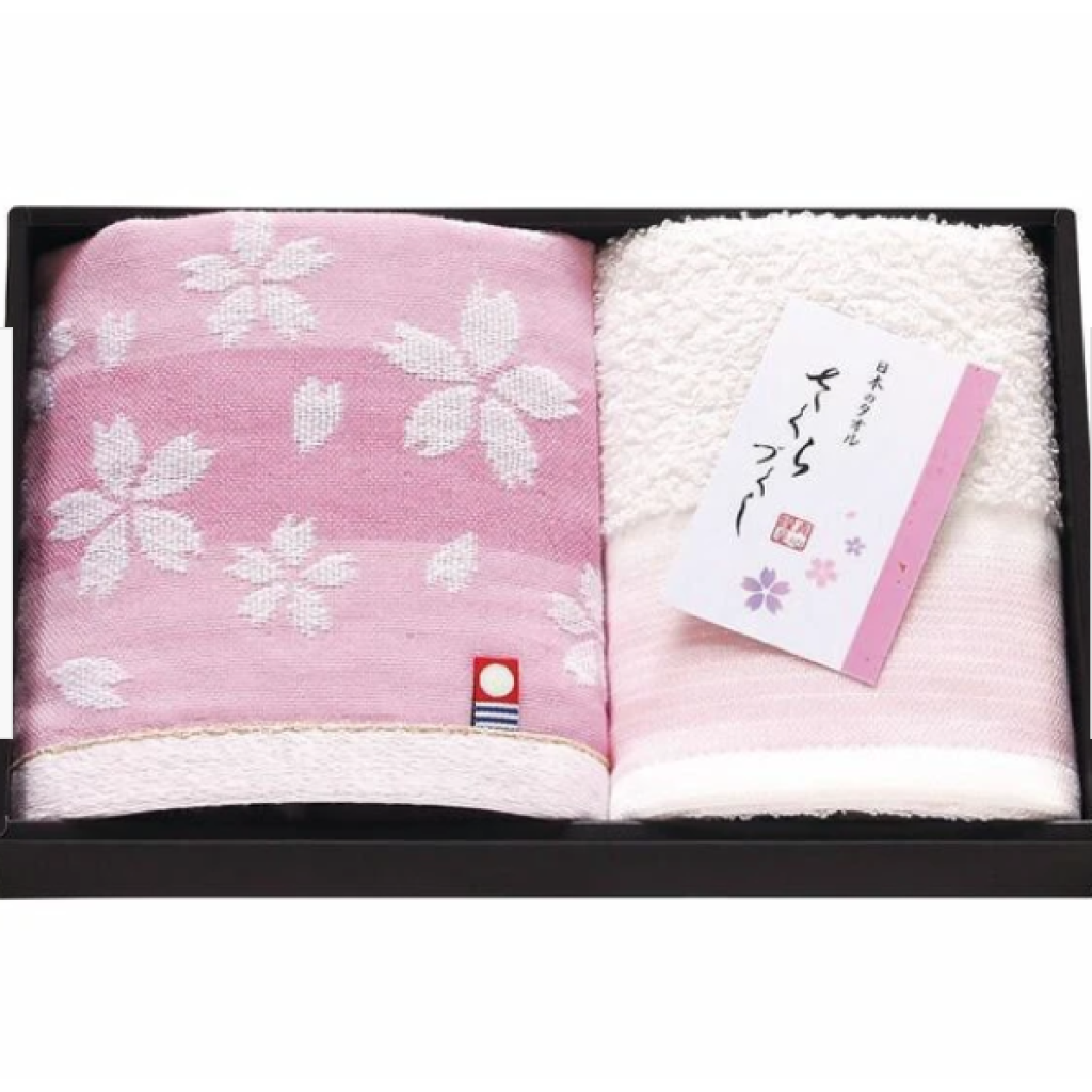 日本今治x櫻花毛巾禮盒套裝(長毛巾+方巾) (日本製)