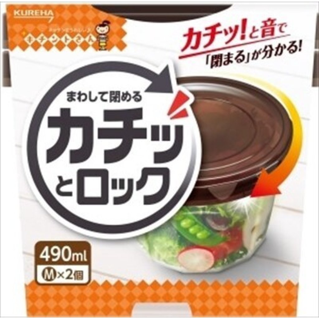 日本KUREHA旋轉密封蓋保鮮盒 (M) 490ML (2枚入) (日本製)