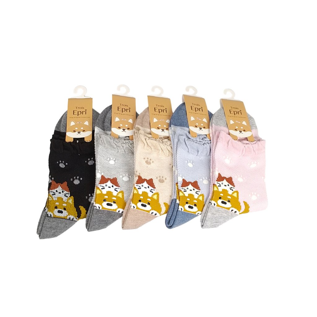 日式貓貓柴犬圖案襪 (日本製)
