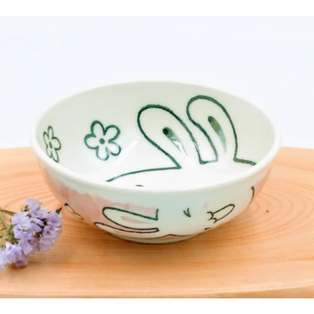 日式陶瓷花草瓦碗(兔仔) 13.2CM(高5.3CM) (日本製)