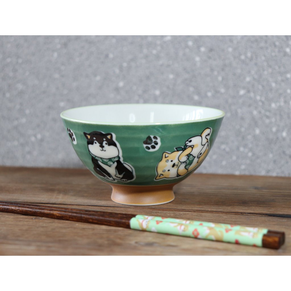 日本美濃燒豆柴瓦碗(綠)12.5CM (日本製)
