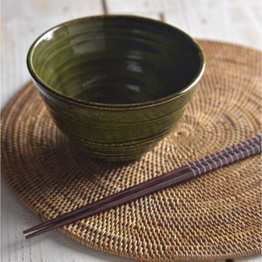 日本美濃燒飯碗 (墨綠) 13.5CM (日本製)