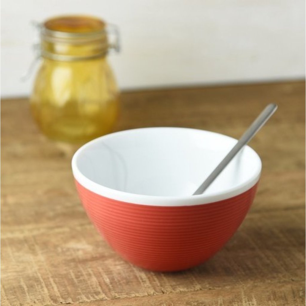 日本美濃燒橫紋飯碗 (橙紅) 12CM (日本製)
