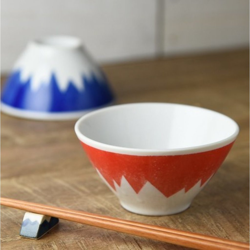 日本美濃燒富士山飯碗 (紅色) 11.7CM (日本製)