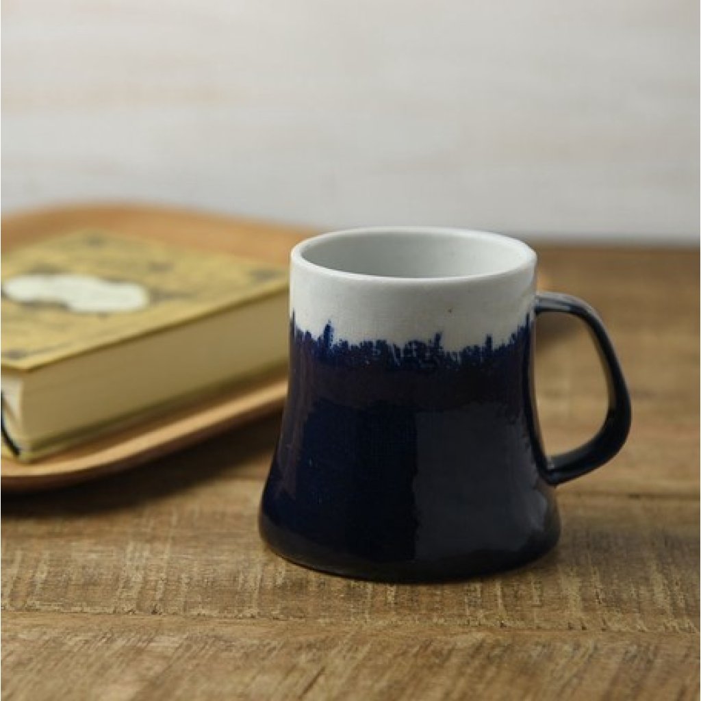 日本美濃燒富士山瓦杯 (深藍) (日本製)