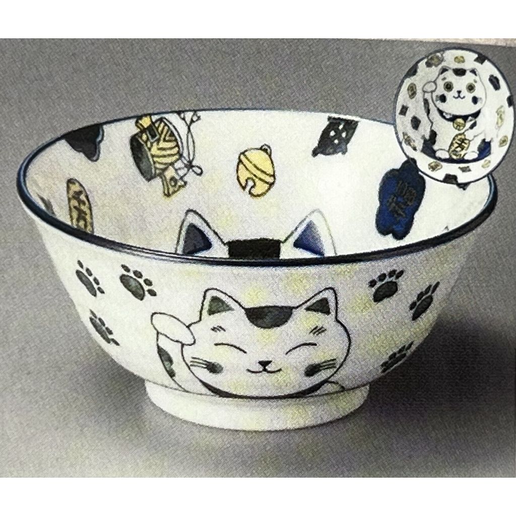 日本陶瓷縁起招財貓瓦碗(青)13.2cm (日本製)