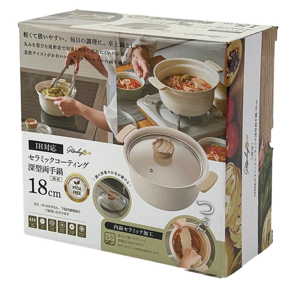 日本Grinday陶瓷塗層雙柄鍋18CM (明火/電磁爐OK!) (非日本製)