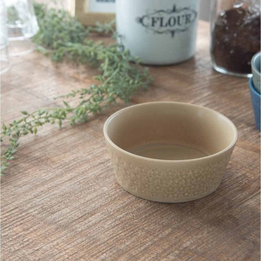 日本美濃燒壓花啞光飯碗 (米色) 13CM (日本製)