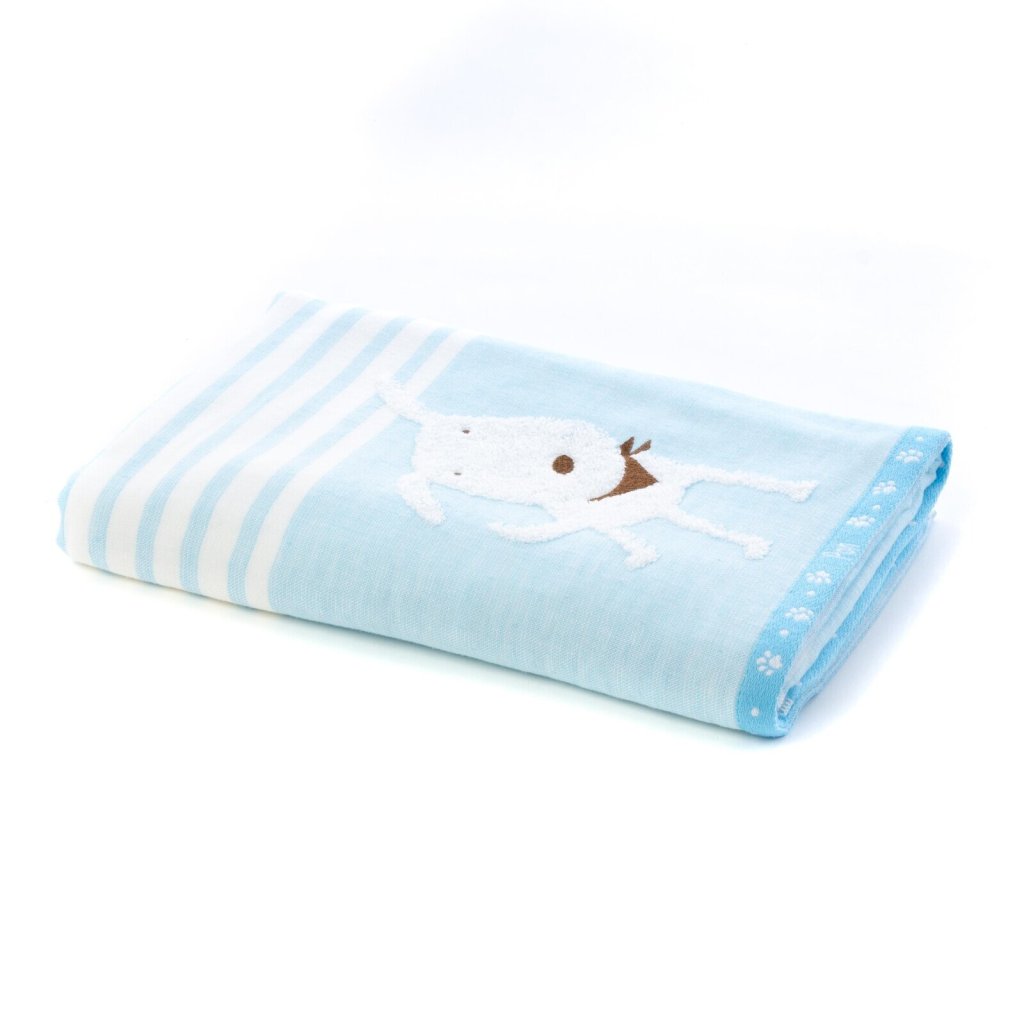 日本今治xHartwell可愛小狗紗布雙面大浴巾(粉藍) 60x120 (日本製)