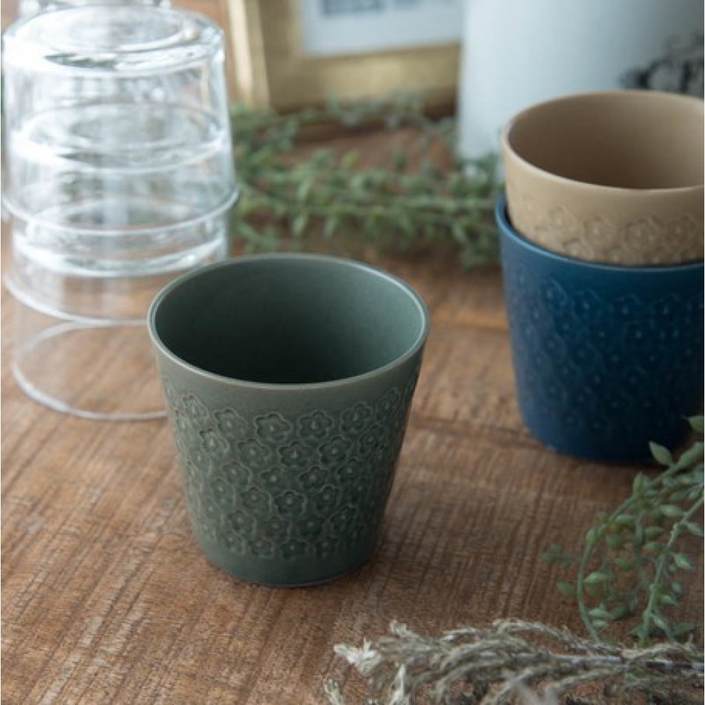 日本美濃燒壓花啞光瓦杯 (綠色) 8.5CM (日本製)