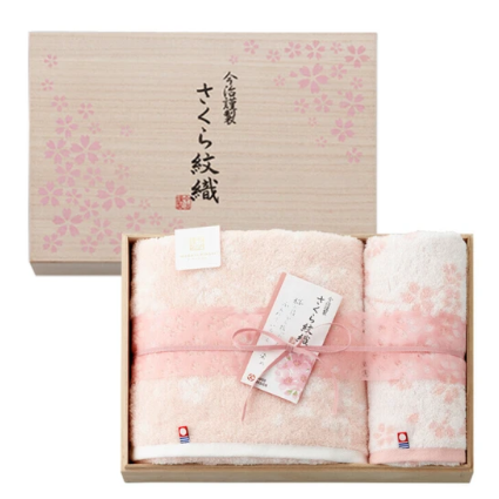 日本今治さくら紋織り櫻花木盒套裝(大浴巾+長毛巾) (日本製)