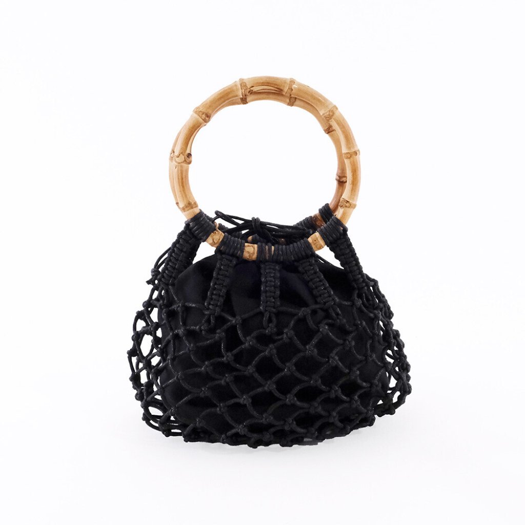 日式手工圓形竹編織包(黑) (非日本製)
