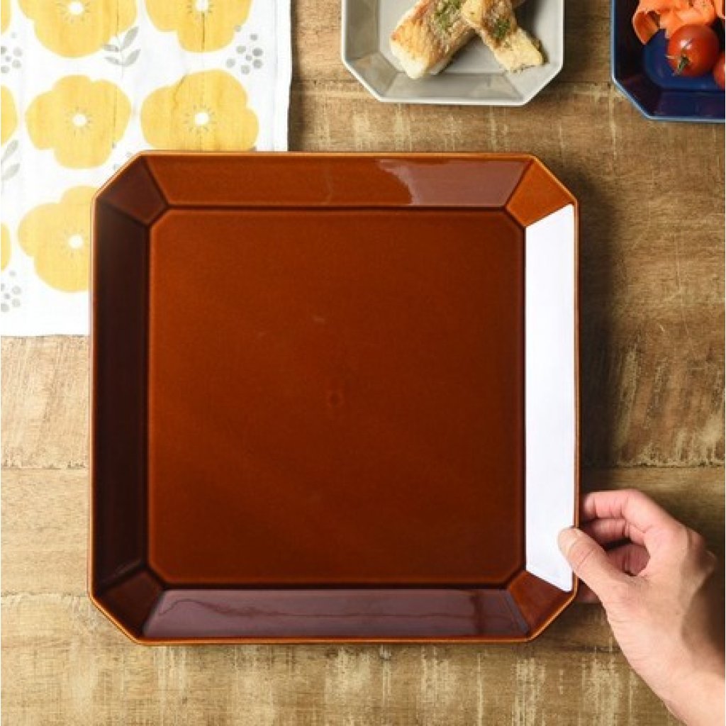 日本OCTO美濃燒八角形盤 (深啡) 26.5CM (日本製)