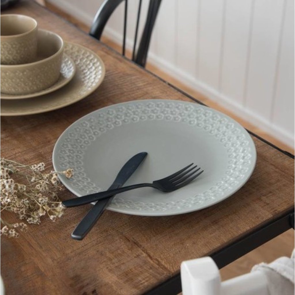 日本美濃燒壓花啞光圓碟 (灰色) 25.5CM (日本製)