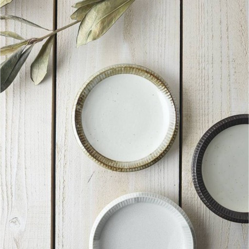 日本美濃燒削ぎ模様圓碟 (土色) 14CM (日本製)