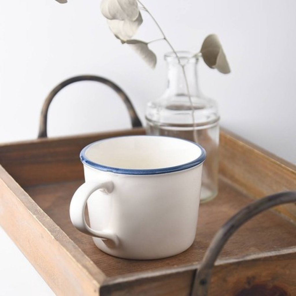 日本美濃燒瓦杯 (白色藍邊) 12.5CM (日本製)