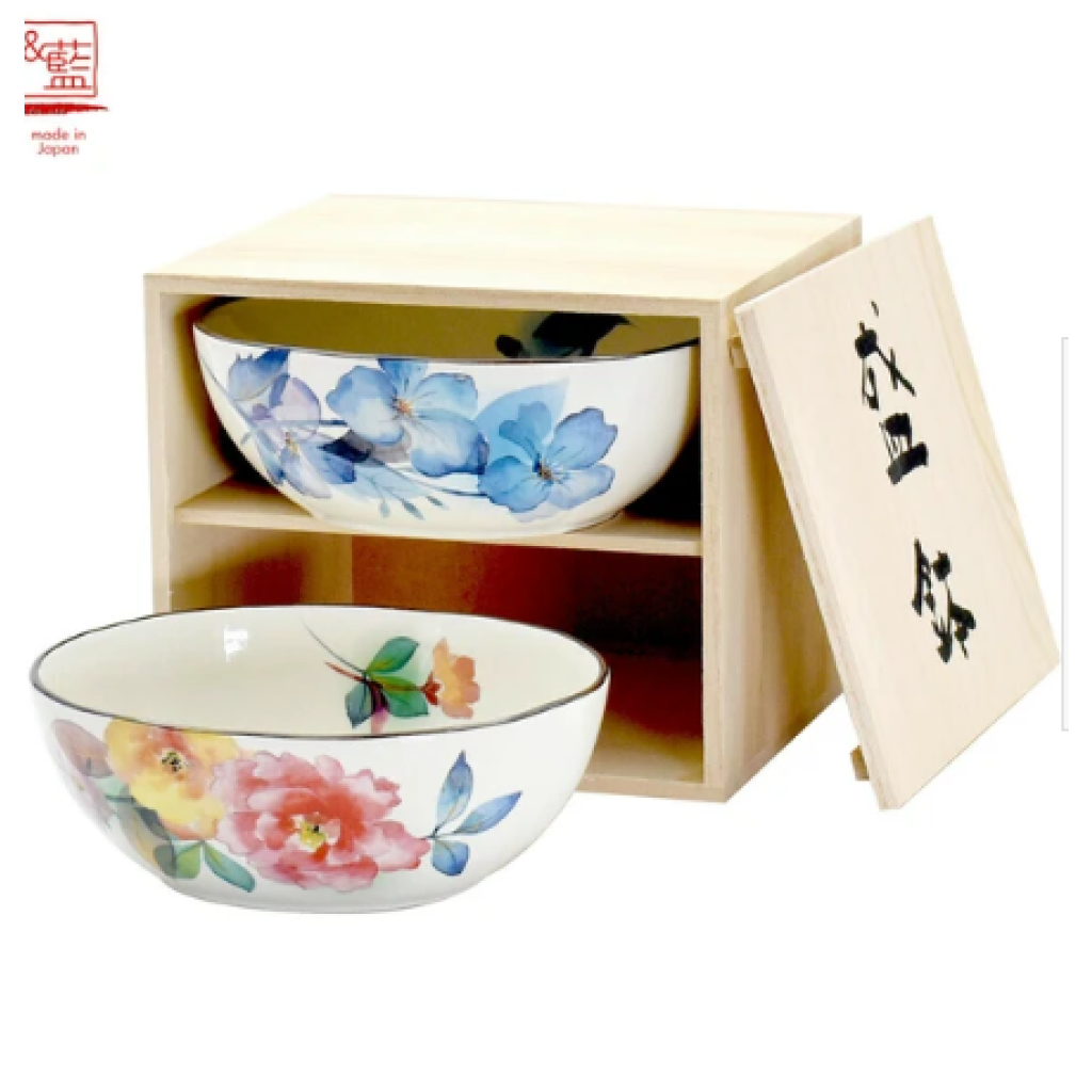 日本美濃燒組盛鉢瓦碗禮盒套裝(虹彩花)16CM (2枚入) (日本製)