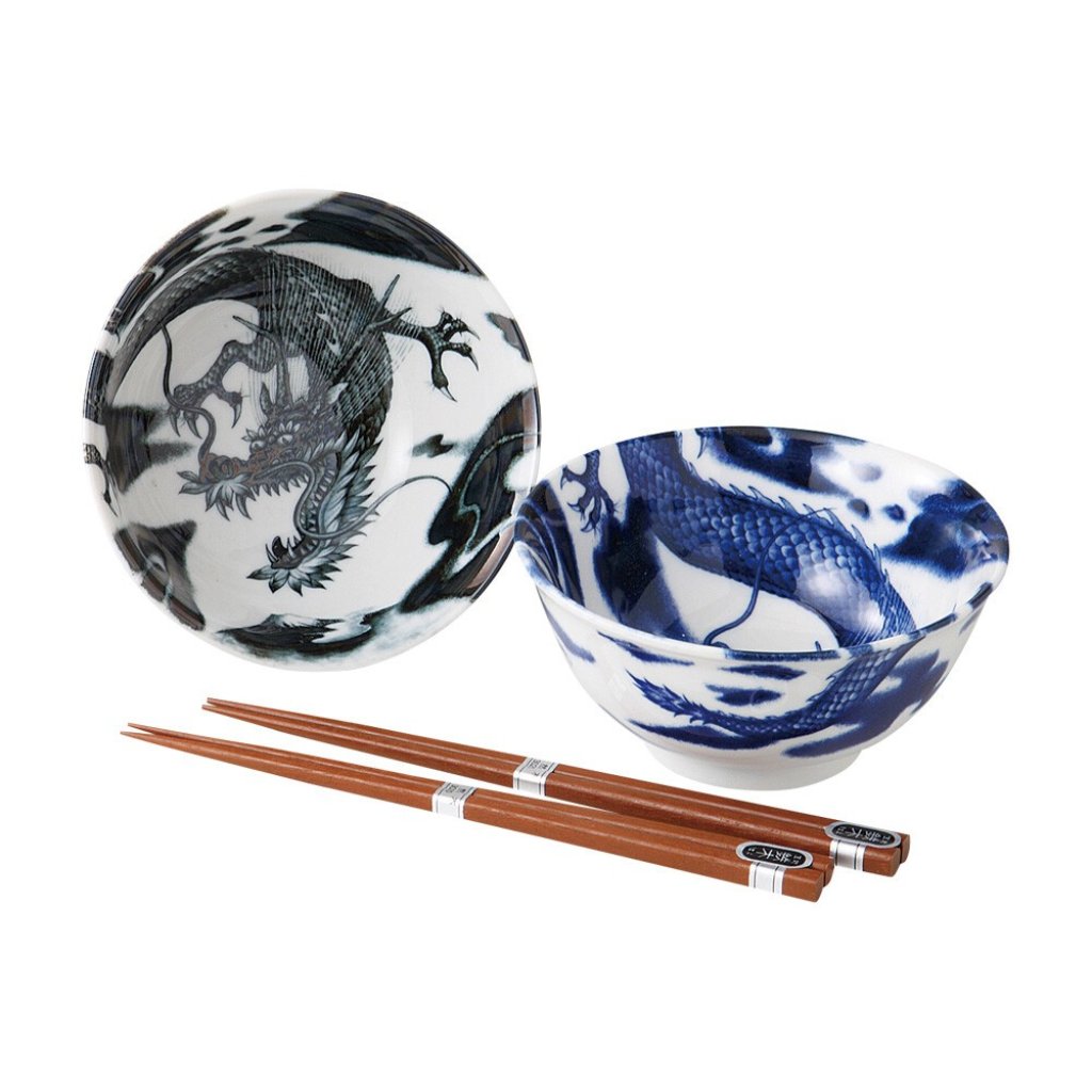 主頁 日本美濃燒陶瓷雙龍出海瓦碗連筷子套裝 (日本製)