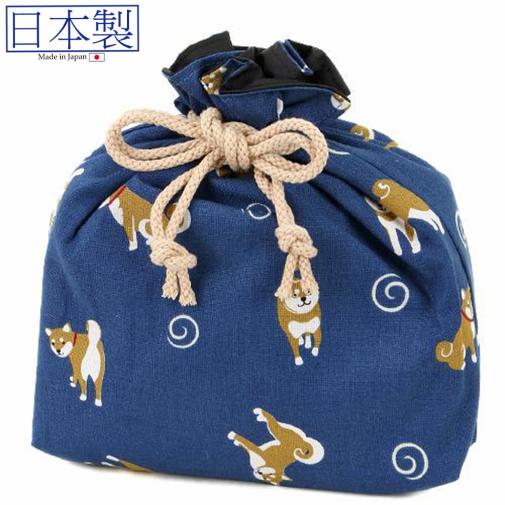 可愛柴犬索繩袋 (大)(寶藍色) (日本製)