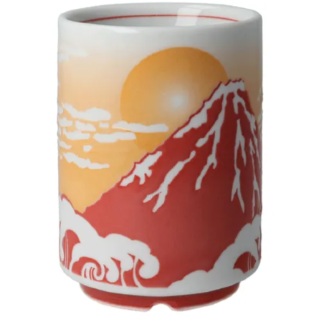 日本美濃燒湯呑(富士山)(赤) (日本製)