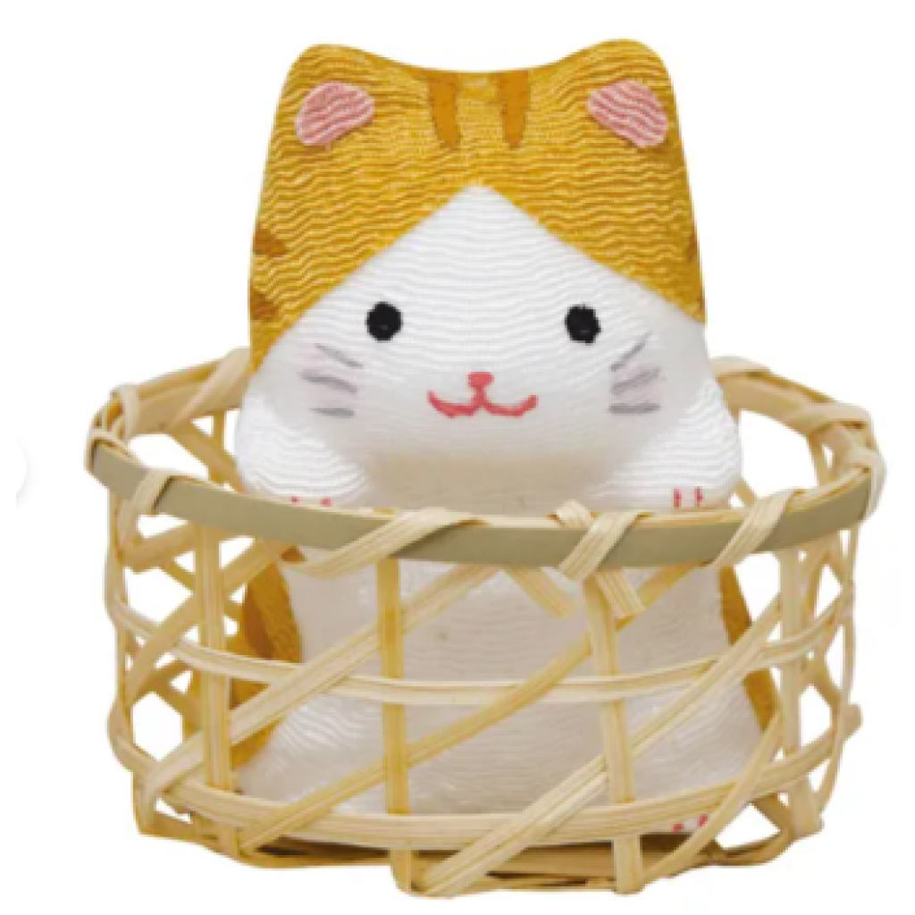 主頁 日本人造絲可愛竹籃貓貓擺設(啡色) (日本製)