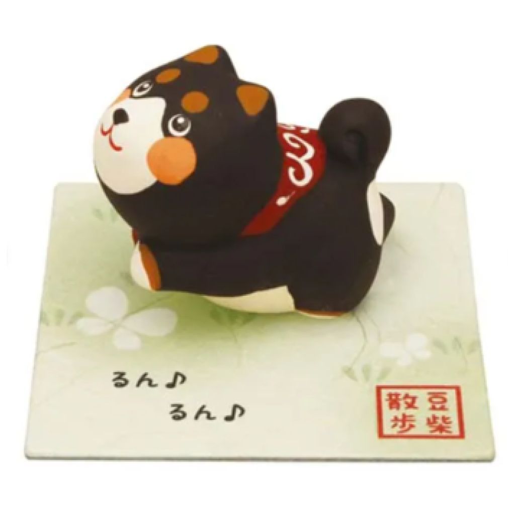 日式陶瓷快樂柴犬(黑) (非日本製)