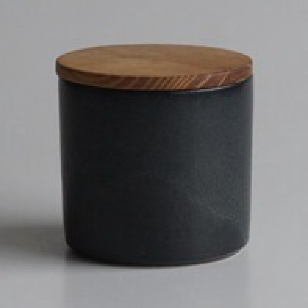 日本SHIKIKA陶瓷木蓋調味樽 (黑色) (日本製)