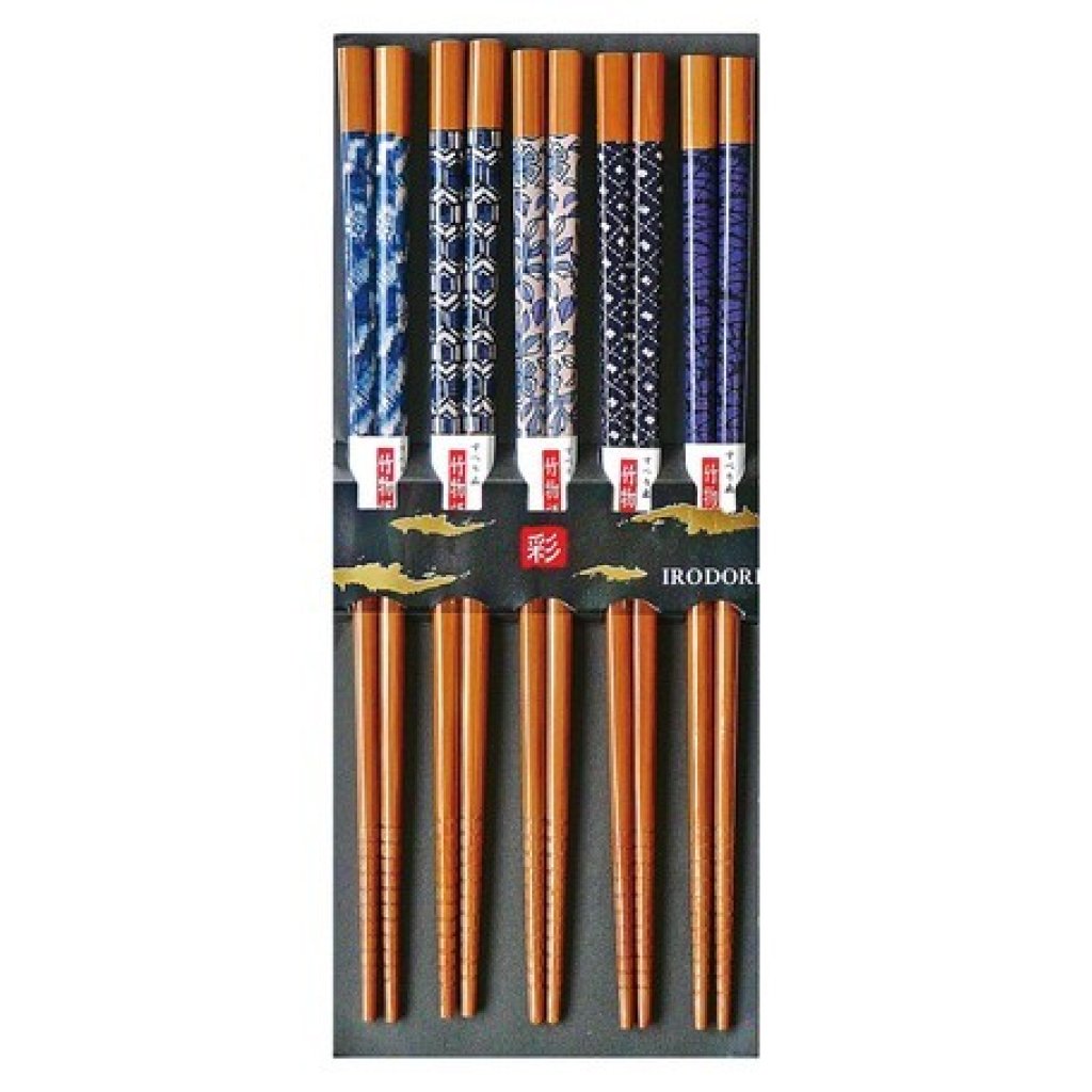 日式スス竹藍染傳統圖案天然竹筷子 (5對入) (日本製)